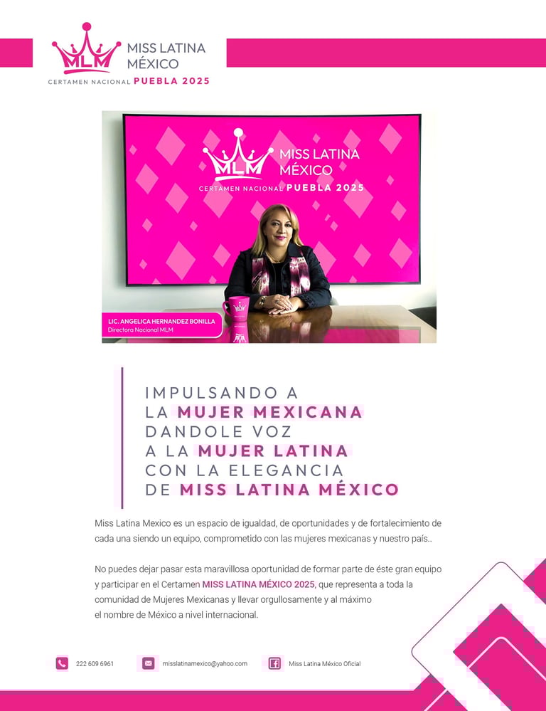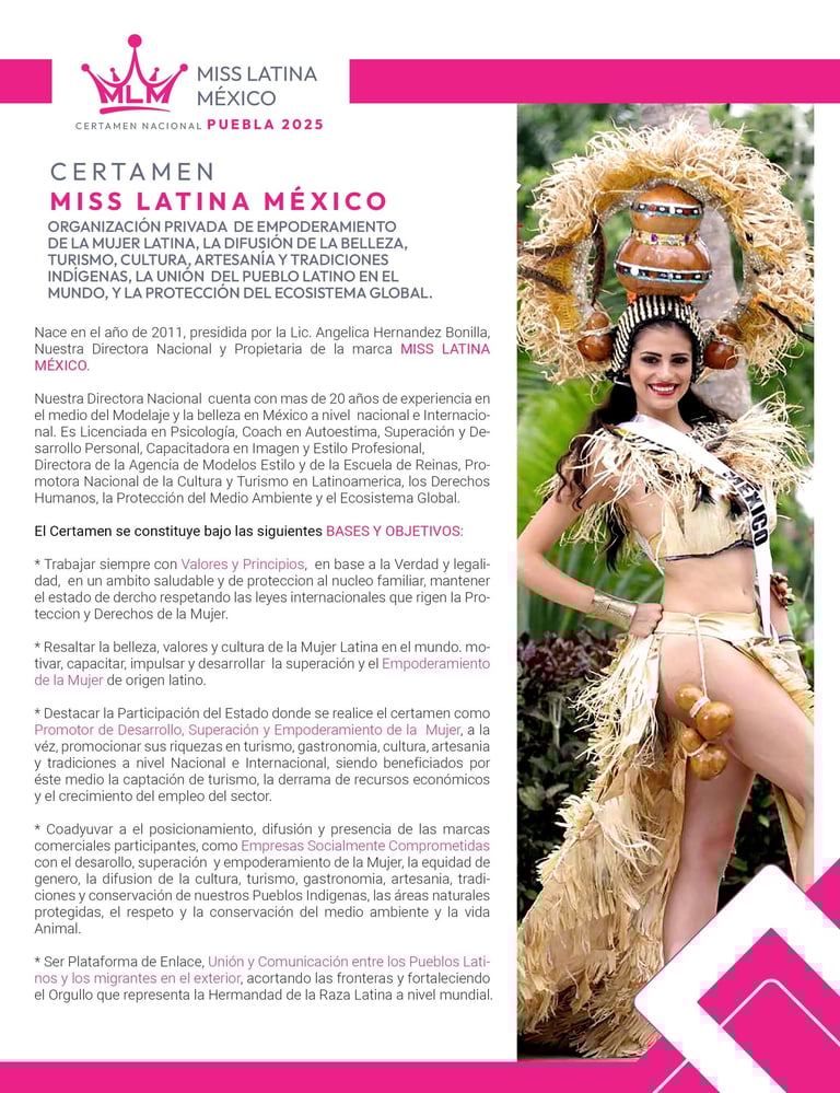 Desde 2012 Miss Latina México ha recorrido nuestro país buscando aquella chica que represente dignamente el Orgullo, la Belleza, Cultura e Historia de México.